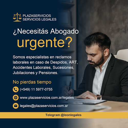 Somos especialistas en reclamos laborales, ART, accidentes de tránsito y laborales, sucesiones, jubilaciones y pensiones. No pierdas tiempo. 15 años al servicio legal de particulares, ONG´s, instituciones sin fines de lucro, Etc.